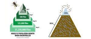 Many insecticides and application methods target adult insects, yet for flies, approximately 85% of the population is in the immature stage. When you combine adulticides with insect growth regulators, you’re targeting the entire fly population, not just the adult stage.